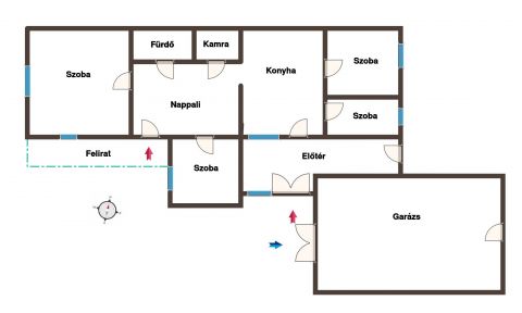 3 szoba + 1 félszoba (22 m², 9 m², 10 m², 6 m²)