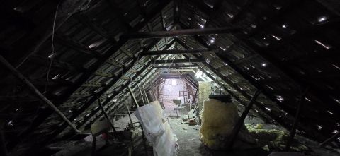 A tetőszerkezet fa, cserép fedéssel. A födém részben stukatúros, részben beton, így a tetőtér akár beépíthető. A nyílászárók fából készültek.
