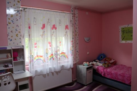 A felső szinten két szoba, illetve egy tetszőleges célra kialakítható kisebb hely található.