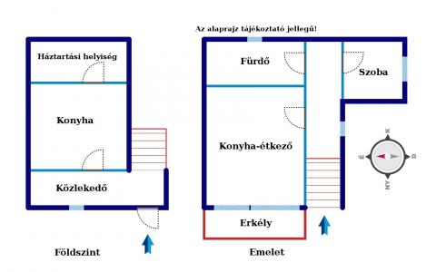 A kétszintes ház alsó szintjén egy háztartási helyiséget és egy konyhának is kialakítható szobát találunk. A felső szintre az épületen belül juthatunk el, itt egy szinten, egy fürdőt, konyha-étkezőt és hozzáépítéssel egy hálószobát alakítottak ki. Az 1025 nm-es telken veteményes, gyümölcsfák, garázs és fáskamra is megtalálható. Víz és villany bekötésre került, a szennyvízhálózatra csatlakozásra is van lehetőség az utcában. Az ingatlan sajnos elhagyatott egy ideje, a szobában lévő beázás gyors javításával és az udvar kitisztításával lakhatóvá alakítható.