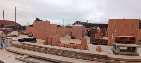 Az utca aszfaltozott zsákutca, ennek is a légvégén folyik az építkezés.