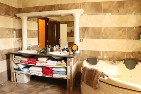 - Gránit burkolatok, kristály csillárok, beltéri ajtó tömör fából