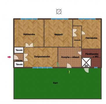 - A bejáraton belépve egy 2,3 m²-es előtér fogad, innen jutunk a 16 m²-es