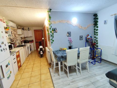 A bejárati ajtó cseréje után, (amely a vételár részét képezi) műanyag nyílászárón juthatunk be az otthonba, amin fa thermo, bukó-nyíló ablakok találhatóak a nappalinál pedig fehér bukó-nyíló műanyag nyílászáró.