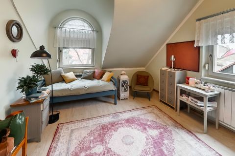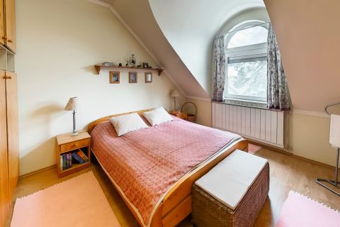 A ház 7 és fél szobája biztosítja, hogy minden családtagnak meglegyen a saját tere, legyen szó hálószobákról, dolgozószobáról, játszószobáról vagy hobbihelyiségről. A nagy belmagasság minden szinten légies, tágas érzetet kelt, míg a praktikus helyiségosztás megkönnyíti a mindennapokat.