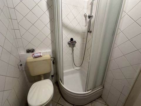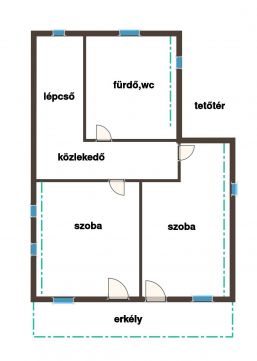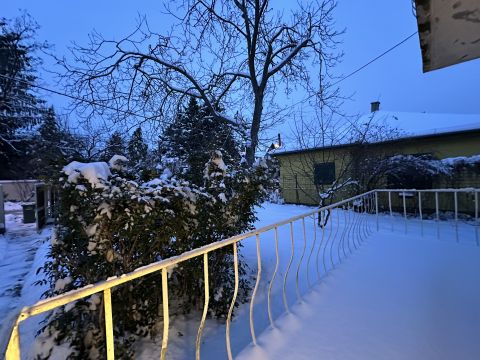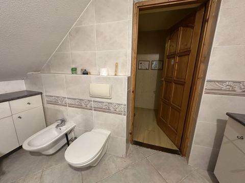 -ben épült, összközműves. A földszinten található a nappali, konyha, hálószoba és egy kisebb zuhanyzó wc-vel ellátott fürdőszoba. A tetőtérben további 2 szoba egy nagy méretű fürdő, káddal.