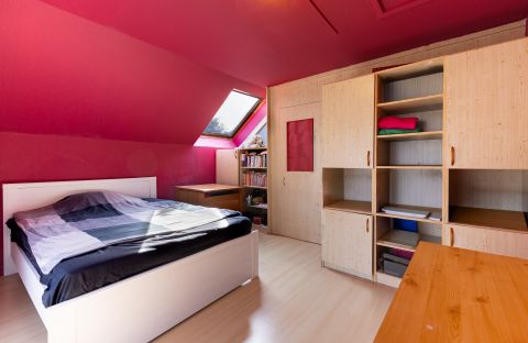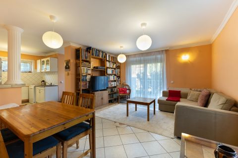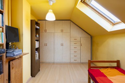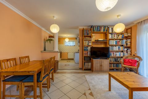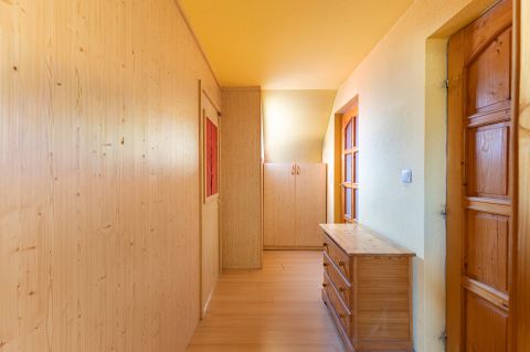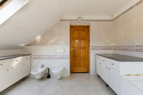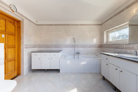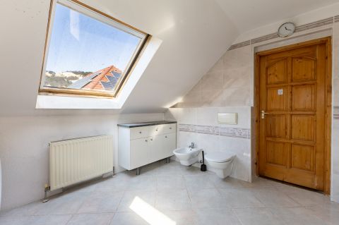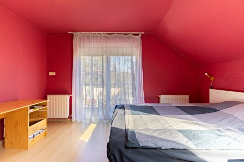 A ház 2000-ben épült, teljes közművel ellátott. A földszinten nappali, konyha, hálószoba, valamint egy kisebb, zuhanyzós fürdőszoba kapott helyet, WC-vel. A tetőtérben további két szoba és egy tágas, káddal felszerelt fürdőszoba található. Az emelethez erkély, a földszinthez pedig terasz kapcsolódik.
