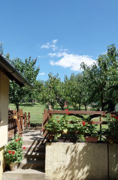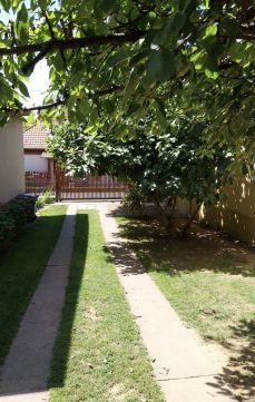 A 944 m²-es telek rendezett, gyümölcsfákkal beültetett, kellemes kertkapcsolatot biztosít.