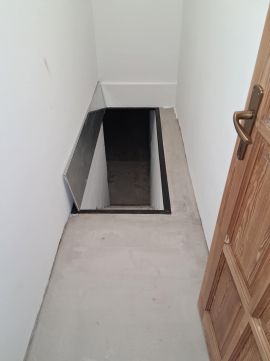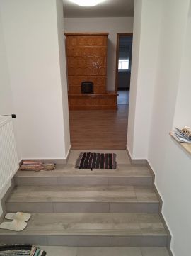 Elosztása: nappali, 2 és fél szoba, konyha, étkező, fürdőszoba, WC, kamra (pincelejárattal), padlásfeljáró