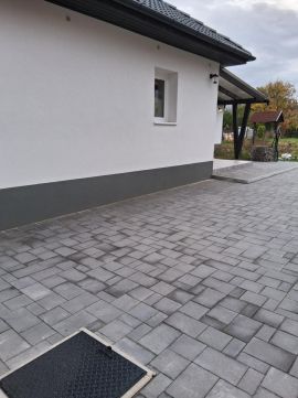 A ház külön bejárattal rendelkező 11,5 m²-es helyisége kiváló lehet fodrászat, kozmetika, iroda vagy kisebb vállalkozás céljára, de egybe is nyitható akonyhával, további bővítés céljából.