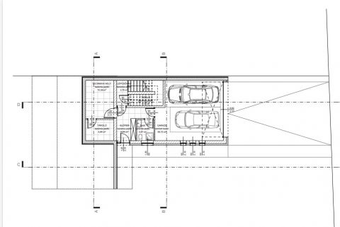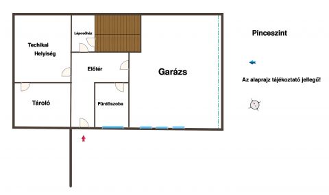 Az alsó, pinceszinten egy 38 m²-es dupla garázs, előtér, fürdő, két tároló, valamint a hőszivattyús fűtési és melegvíz ellátást biztosító technikai helyiség található.