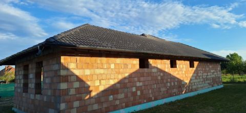 A tartó falai Porotherm 30 N+F téglából készültek, melyek a tervek szerint 15cm hőszigeteléssel lesznek ellátva, Födéme fa fa födém, melyhez részben rendelkezésre áll a szigetelés. Héjazata antracit színű cserépfedés. Az épületet saját célra kezdte el építeni az eladó kiváló minőségben.