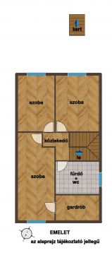 Az ingatlan három szinten összesen 195 nm-t kínál, melyből 130 nm a lakótér, további 65 nm pedig a szuterén, belső lépcsőn megközelítve. A ház elrendezése kifejezetten ideális családok számára, hiszen a nappalin kívül négy különálló szoba biztosítja a kényelmes privát tereket.