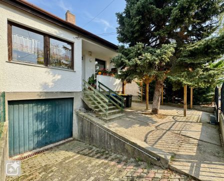 Az ingatlan kertje rendezett, a hátsó részen tágas zöld területtel és épített sütögetővel. Az utcafronton további külön kapun keresztül közelíthető fedett autóbeálló szolgál extra parkolási lehetőségként. A ház előtt is kényelmesen tud parkolni 2 autó.