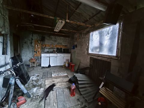Az udvaron gyűrűs kút, aknás garázs, valamint több tárolóhelyiség található. A ház első részében egy jól kihasználható épületrész van, amelyben egy felújításra szoruló szoba, fürdőszoba és közlekedő kapott helyet, akár külön lakrész kialakítására is alkalmas.
