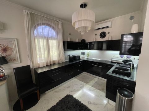 A ház teljes berendezéssel, bútorokkal és Swarovski csillárokkal együtt eladó a vételár tartalmazza ezeket