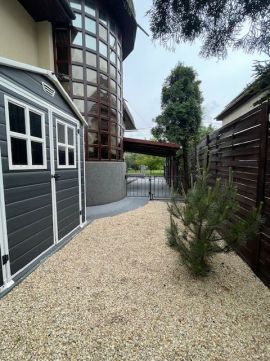 -Mediterrán kert gondozott növényállománnyal,füves résszel is ,és a hozzátartozó programozható öntözőrendszerrel fúrt kúttal , Jacuzzi előkészítés kialakítva kertben áramhálózattal együtt