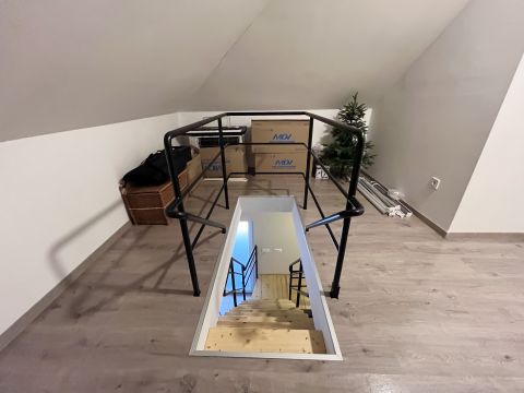 A tetőtér 3 éve lett kiépítve, gipszkartonozott, így azonnal használható kiváló lehetőség plusz lakótér, dolgozószoba vagy vendégszoba kialakítására.