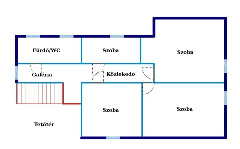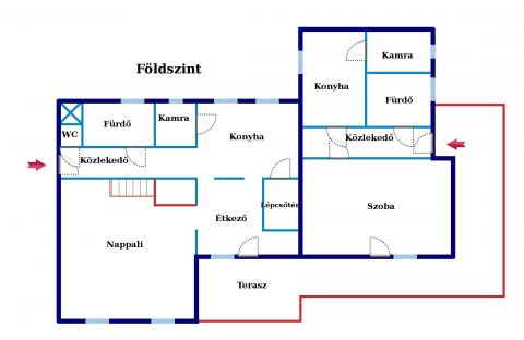 - nappali + 4 haló elrendezés, továbba a kisebbik lakrészben plusz egy szoba