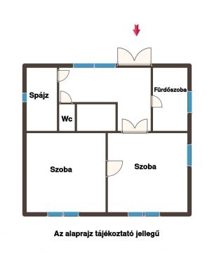 62 négyzetméteres , 2 szobás családi ház 2592 négyzetméteres telken található,