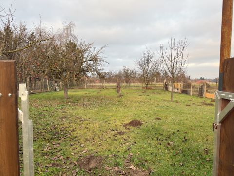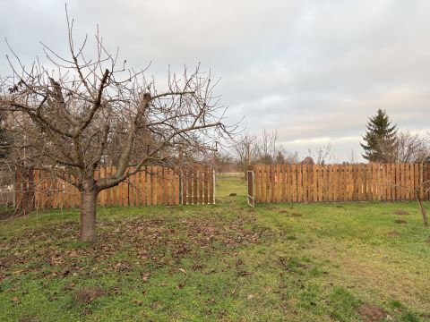 Az udvaron a garázs betonalapja már elkészült, így a további építkezés előkészített, igény szerint folytatható.