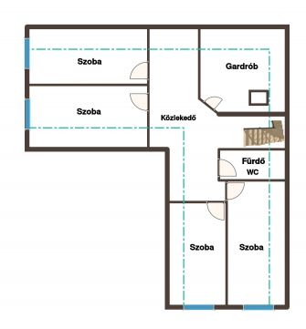 A tetőtérben 4 szoba, egy gardrób, valamint a zuhanyzóval és WC-vel szerelt fürdőszoba került kialakításra. A szint bruttó alapterülete 85 m², de a belmagasságból több helyen elvesz a tető síkja.