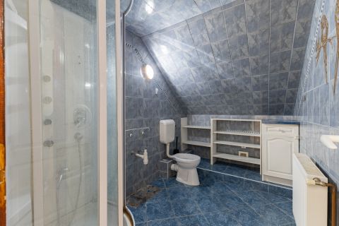 Valamennyi helyiség új aljzatburkolatot kapott, a vizes helyiségekben pedig új szaniterek és fali burkolatok kerültek kialakításra. A pala tetőhéjazat megtartása mellett megvalósult a tetőtér beépítése, amely tovább növelte az ingatlan hasznos alapterületét.