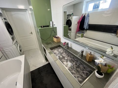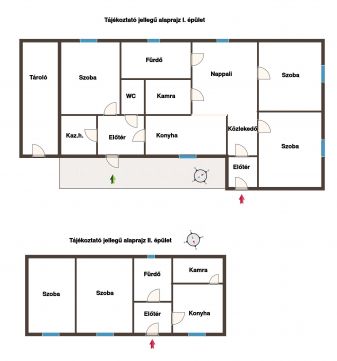 A település központjában lévő, csendes utcában vált eladóvá egy telken két családi ház. A telek teljes területe 1291nm, körbekerített, összközműves. A fő épület 100nm alapterületű, helyiségei igényesen fel lettek újítva, Az épület, három szobát, közlekedőket, ebédlőt, fürdőt, különálló wc, kamra valamint kazánház helyiségeket foglal magába. Az elektromos hálózat is teljes felújításon esett át, a nyílászárók is korszerű - redőnnyel, szúnyoghálóval felszerelt - hőszigetelő üvegezéssel ellátott műanyag nyílászárókra lettek cserélve. A fűtés egyaránt megoldható vegyes tüzelésű és gáz kazánnal is. A kellemes nyári hőmérsékletről inverteres hűtő-fűtő klíma gondoskodik. A meleg vizet villany bojler biztosítja.