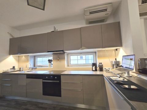 A fűtésről és hűtésről hőszivattyús fan-coil rendszer gondoskodik, de hagyományos kombi cirkóval is van lehetőség fűteni, ill. a nappaliban kandalló található.
