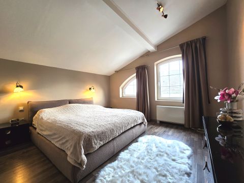 A négy hálószoba az emeleten található, melyeket egy nagy belmagasságú, impozáns közösségi tér köt össze.