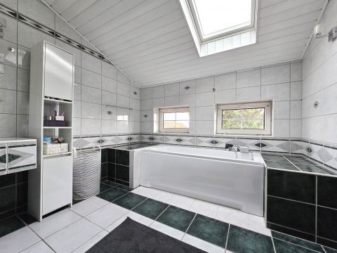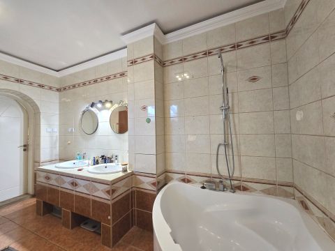 A földszinten és az emeletes is kivételesen nagy fürdőszoba található.