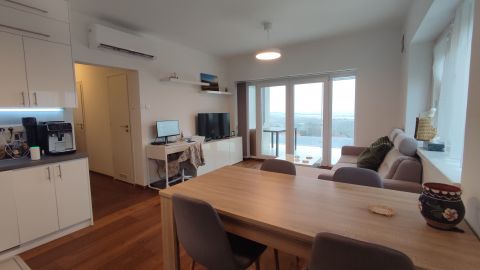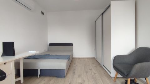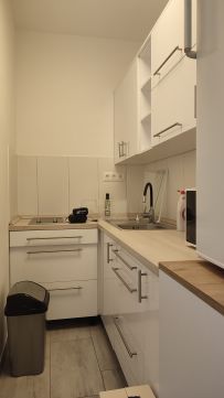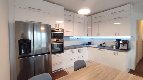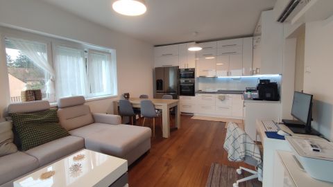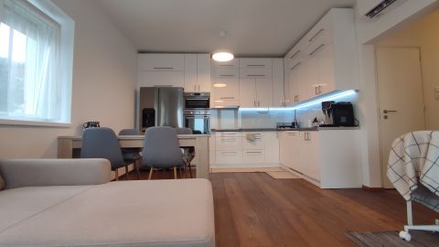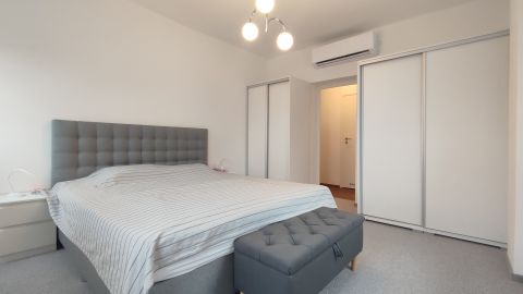 A lakás minőségi burkolatokkal és beépített bútorokkal van felszerelve, így az új tulajdonosok azonnal élvezhetik az új otthonuk kényelmét és eleganciáját.