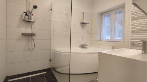 -Fürdőszoba (káddal és épített zuhanyzóval)
