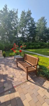 Gondozott, parkosított kert, automata öntözőrendszerrel