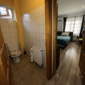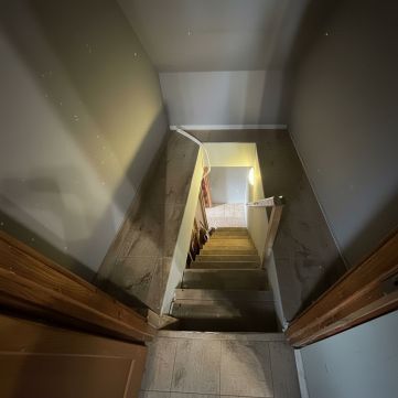 Két nagyméretű szoba illetve egy utcára néző, különálló irodahelyiség, továbbá mosókonyha és wc + teljes egy fürdőszobai egység található ezen a szinten.