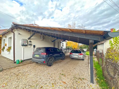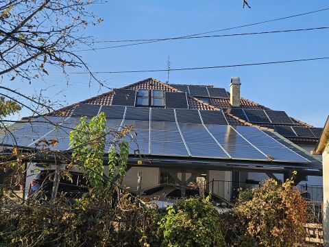 A lakóépület alapozása sávalap, falazata B30-as tégla, a födémszerkezet E-gerendás betongerenda-béléselemez rendszer, amely hosszú távon is stabil, jól terhelhető szerkezetet biztosít. A burkolatok és felületek minden helyiségben gondosan megválasztott anyaghasználattal készültek. A 30 cm vastag grafitos hőszigetelés és az A+++ energetikai besorolás a kiemelkedő hőtechnikai hatékonyság bizonyítéka. A teljes épület energiaellátását egy 20 kW teljesítményű inverteres napelemes rendszer támogatja, amely jelentős részben önellátóvá teszi a háztartást, és minimalizálja az üzemeltetési költségeket.