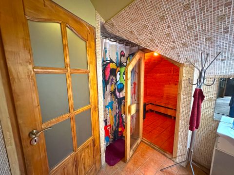 Ezen felül egy hálószoba, tusoló, külön WC és egy beépített szauna is kialakításra került.