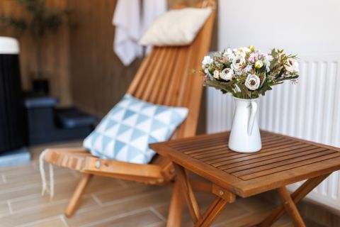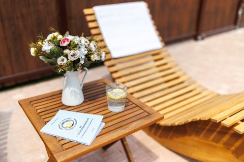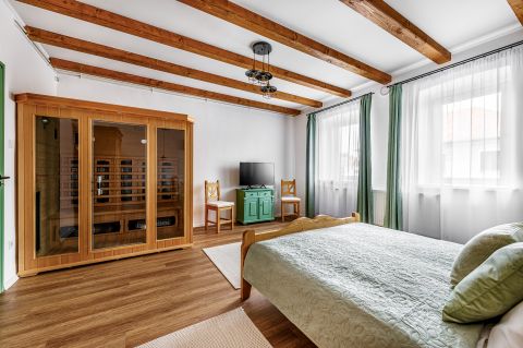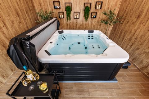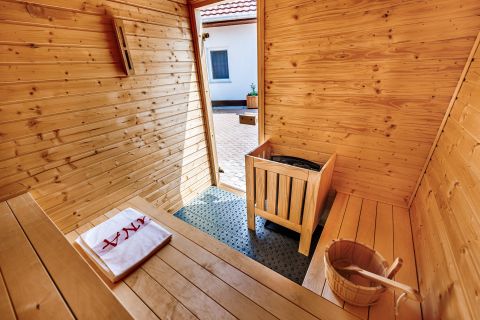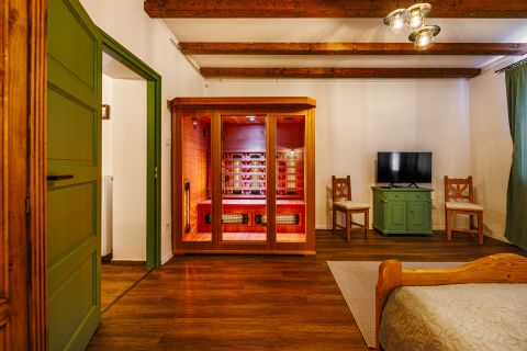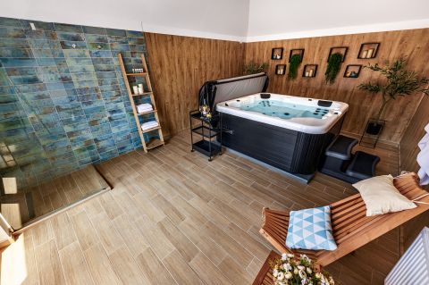 Külön kialakított beltéri wellness helyiség jakuzzival, valamint finn szauna áll rendelkezésre.