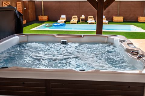 Az udvaron épített, sóbontós medence, valamint kültéri jacuzzi található.