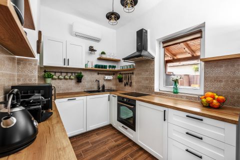 2 hálószoba, nappali, fürdőszoba, modern, gépesített konyha, fedett terasz.