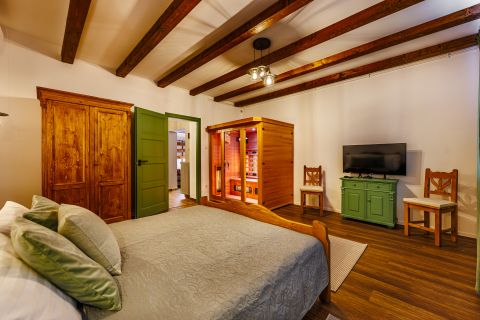 A komfortot 3 db hűtő-fűtő klíma, elektromos látványkandalló és infraszauna biztosítja.