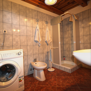 A tágas előtéren keresztül tovább haladva találjuk a női fürdőszobát, majd egy olasz bútorokkal berendezett kényelmes méretü hálószobát, és a férj részére kialakított fürdőszobát.