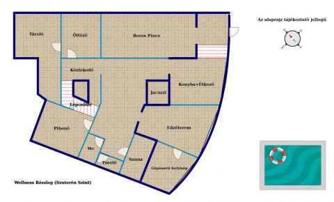 Az ingatlan alsó szintjén minden a pihenésről és kikapcsolódásról szól, itt került kialakításra a WELLNESS részleg.