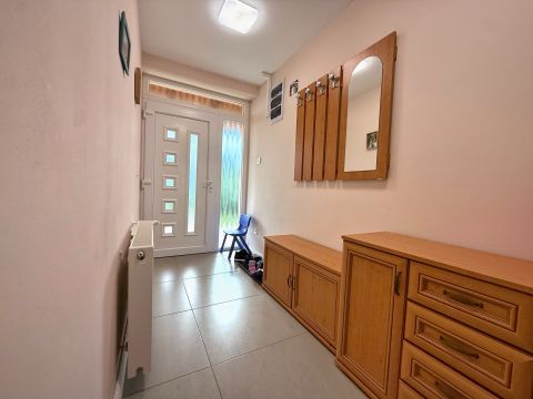 Az ingatlanhoz tartozik egy 42 m²-es dupla garázs, valamint egy 20 m²-es fedett, nyitott terasz, amely közvetlenül a gondosan beültetett, teljesen intim kertre néz. A tujasor, a rendezett pázsit és a természetközeli hangulat valódi biztonságos komfortzónát ad.