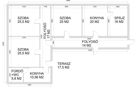A fűtött rész három tágas, déldélnyugati fekvésű hálószobából (25,525,525 m²), egy 11 m²-es konyhából, valamint egy zuhanyzós fürdőszoba-WC-ből áll, melyek egy 17 m²-es közlekedőről nyílnak. Az épület további részében egy folyosóról egy nagyobb, 20 m²-es konyha és egy 16 m²-es spájz közelíthető meg. A konyhában egy jelenleg lezárt kenyérsütésre is alkalmas kemence található. A padlásfeljáró és a pincelejáró a zárt épületrészen belül érhető el.