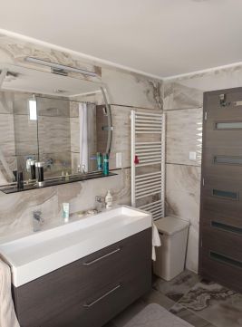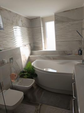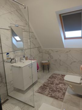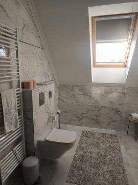 Itt található továbbá egy különálló, nagy méretű hálószoba saját gardróbbal és saját, minden igényt kielégítő fürdőszobával, amely káddal, zuhanyzóval, WC-vel és bidével felszerelt.