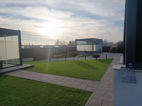 A ház 803 m²-es parkosított telken, a vízparttól mindössze 100 m-re található és minden részletében prémium kivitelezéssel készült.
