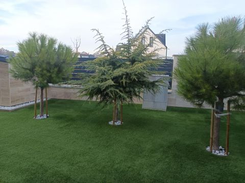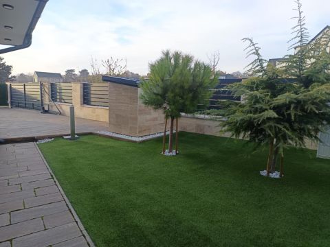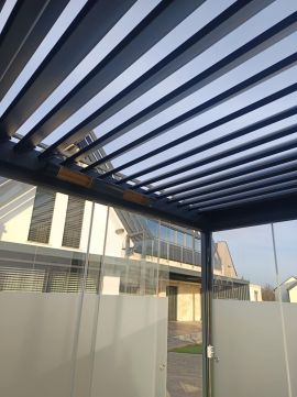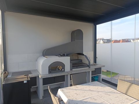 A kertben egy 20 m²-es, négy évszakos kerti konyha található, teljesen pergolázott, üvegezett és motorosan mozgatható árnyékoló- és tetőrendszerrel, infrafűtéssel, áram- és vízbekötéssel.