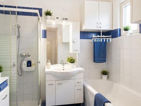 Fürdőszoba káddal és zuhanyzóval, külön WC