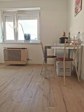 - Előszoba, tágas szoba, amerikai konyhás - nappali, ablakos fürdőszoba,